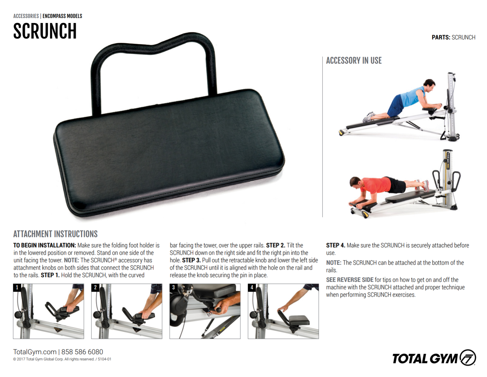 Encompass scrunch accessory는 어깨, 몸통, 다리를 연결해주며 코어 운동을 보다 쉽고 명확하게 할 수 있도록 도와줍니다. 또한, 하지 운동을 할 수 있도록 위치를 조절할 수도 있습니다.
