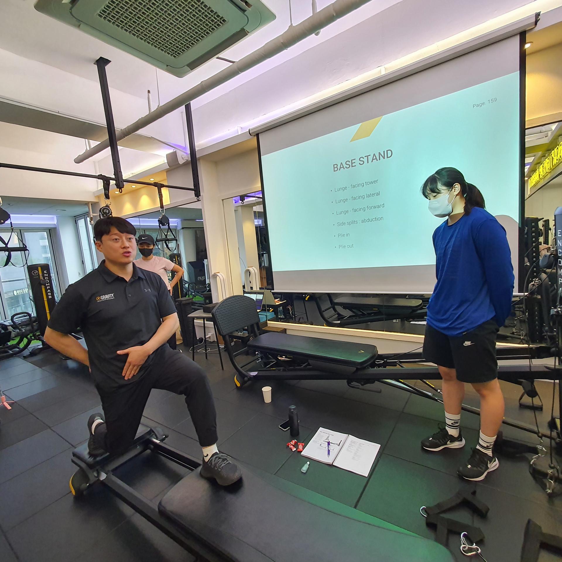 그래비티 코스에서는 11가지 포지션의 자세를 엔컴파스에 적용하여 필라테스, 웨이트 트레이닝, 선수트레이닝을 모두 지도 할 수 있습니다.