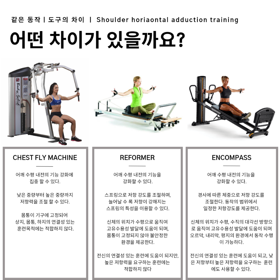 또한 엔컴파스의 경사, 암풀리, 레그풀리 등 6가지의 다양한 악세사리와 글라이드 보드를 사용하여 동작의 운동강도를 보다 섬세하게 조절 할 수 있습니다.